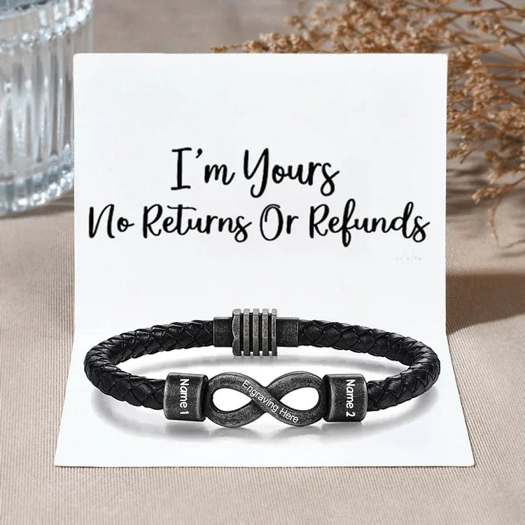 For Husband Personalized 2 Names Infinity Leather Bracelet