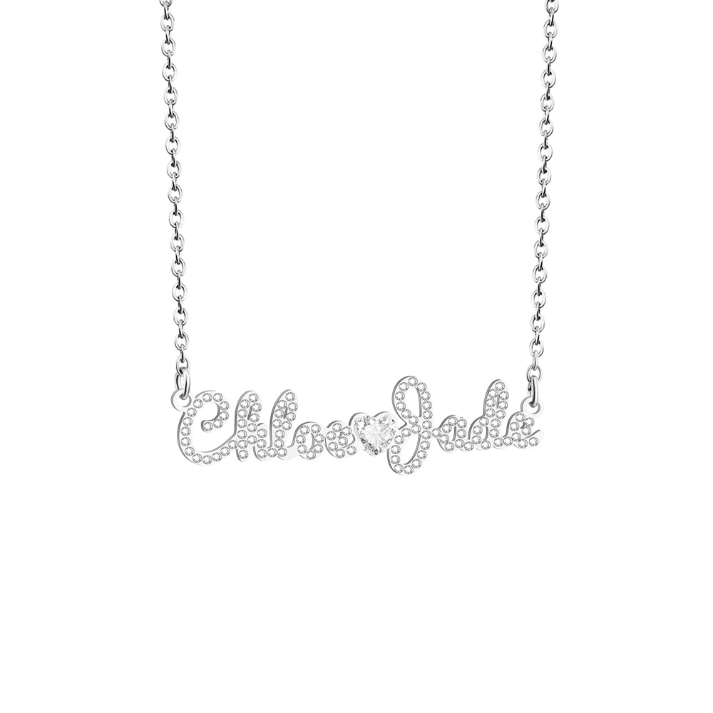 Custom Diamond Couple Name Necklace with Diamond heart