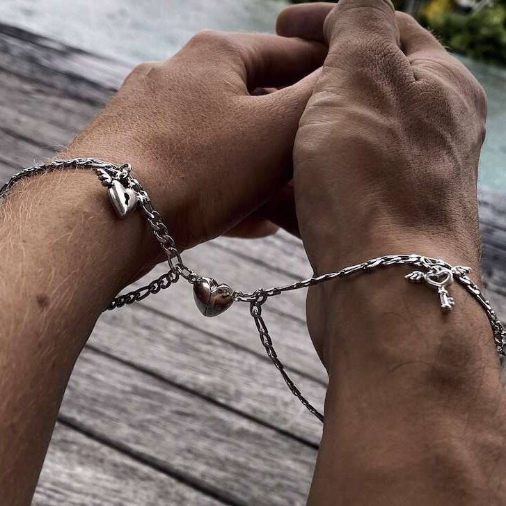 Magnetic Heart Key and Lock Bracelet Set (2 bracelets)