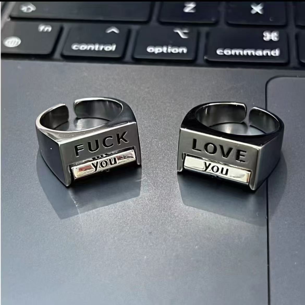 Adjustable FU*K & LOVE Everything Rotatable Mood Control Ring