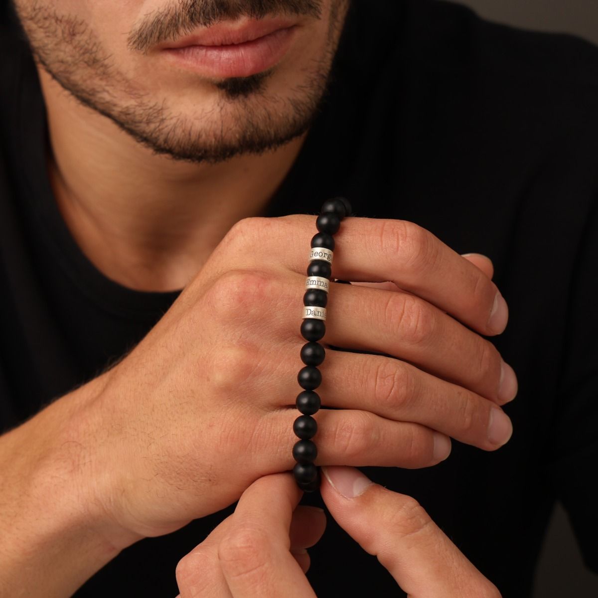Valentine's Day Gift Custom Engraved Black Onyx Name Bracelet