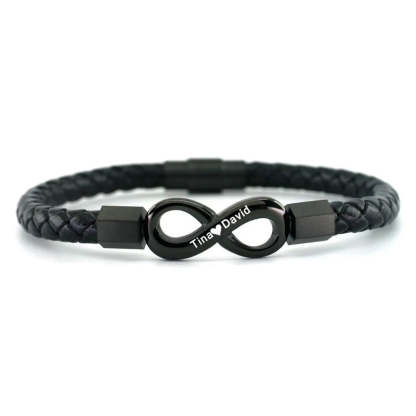 For Husband Personalized 2 Names Infinity Leather Bracelet