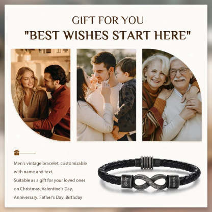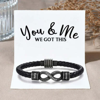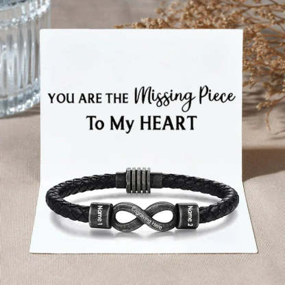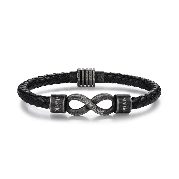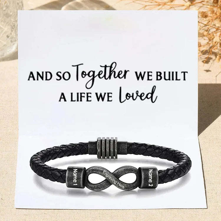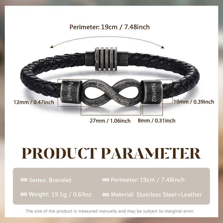 Personalized Men's Infinity Bracelet Custom 2 Names & Text Leather Bracelet Gift Set Birthday For Him