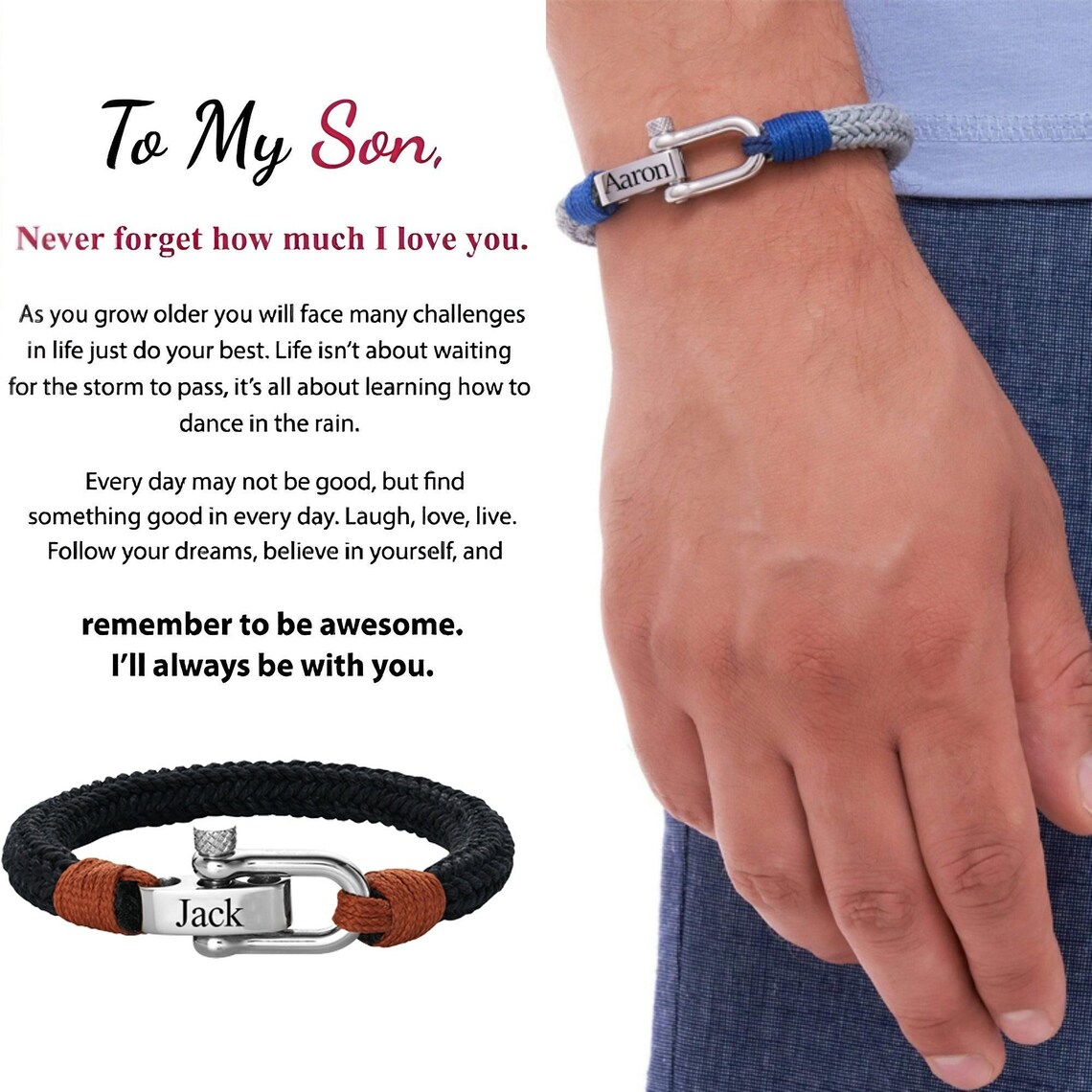 To My Son, Bow Buckle Bracelet "I'll Always be With You" Birthday Gifts for Son