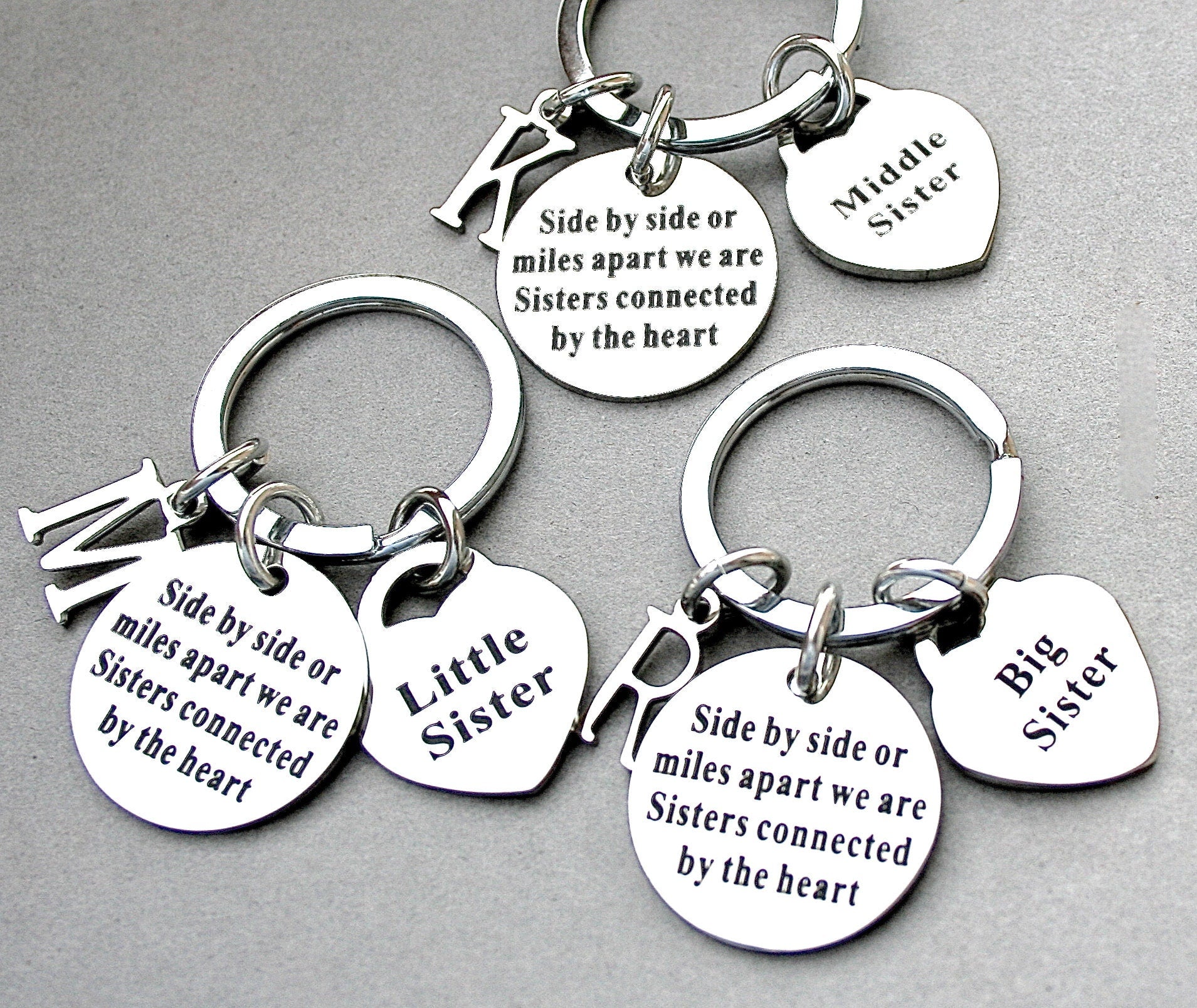 Side By Side Or Miles Apart We Are Sisters Connected By The Heart Sisters Keychain Initial Little Big Middle Sisters,