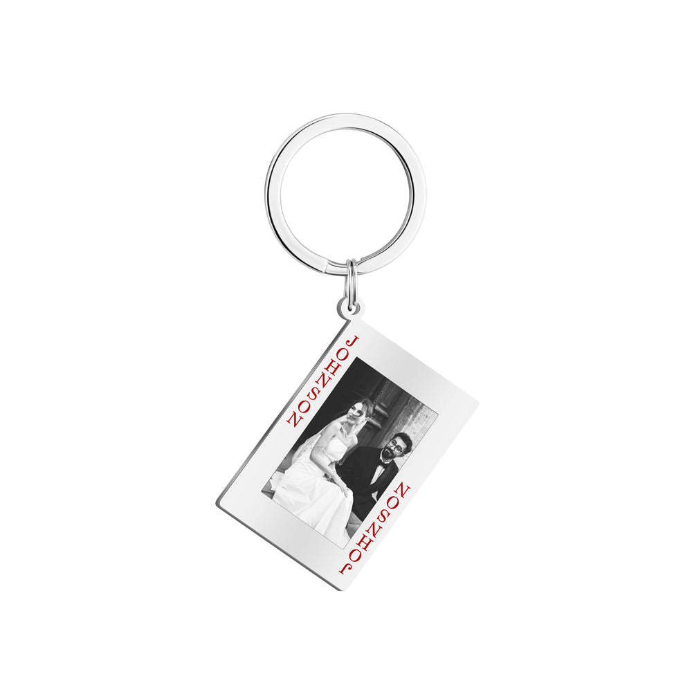 King & Queen Card Personalized Photo Keychain - Unique Couples Engagement Gift Set